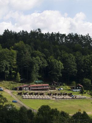 Ubytování: v chatkách a erárních stanech