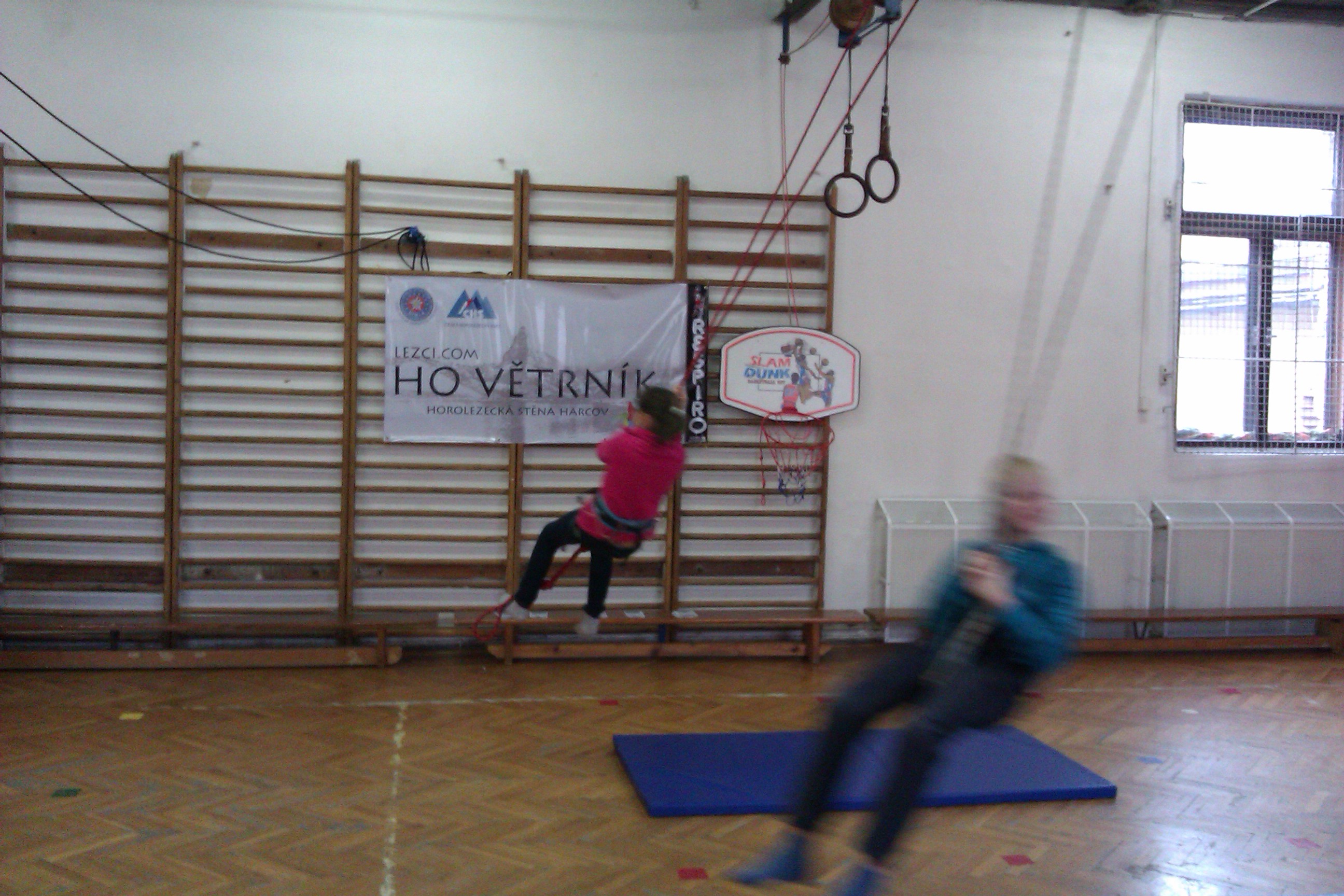 co na stěně pěkně tančí a vždy lezecké věci doma nechá a pak pěkně jančí :).