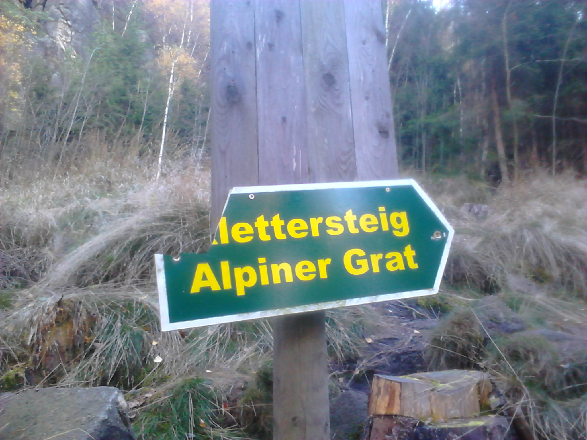 Varianta1 : Z parkoviště Hochwaldblick, po žluté trase nejprve podél lesa, pak upravenou stezkou skrze skály Grosse Felsengasse až k rozcestí u kamenných schodů, kde se vydáte doprava po žluté - puntíkaté cestě směrem na Scharfenstein. Asi po 15 minutách bude odbočka do úzké trhliny ve skále - Mönchskanzel Taube. Je zde postavena vyhlídková plošina vysoko nad údolím, kde budete mít krásný výhled na městečko Oybin. Pohledem dolů spatříte cíl cesty - ferratu Alpiner Grat. K nástupu na ferratu lze slézt od vyhlídky vlevo dolů. Je tam vyšlapaná cesta.