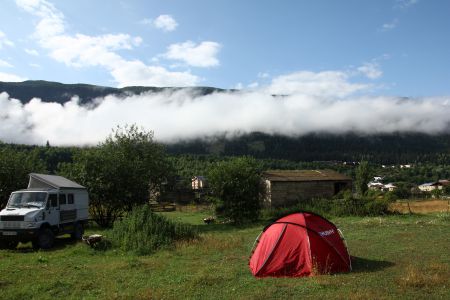Nás počasí pustilo jen na Koruldi, ale nocleh na Tskhakzagari byl skvělý se skvělým výhledem.